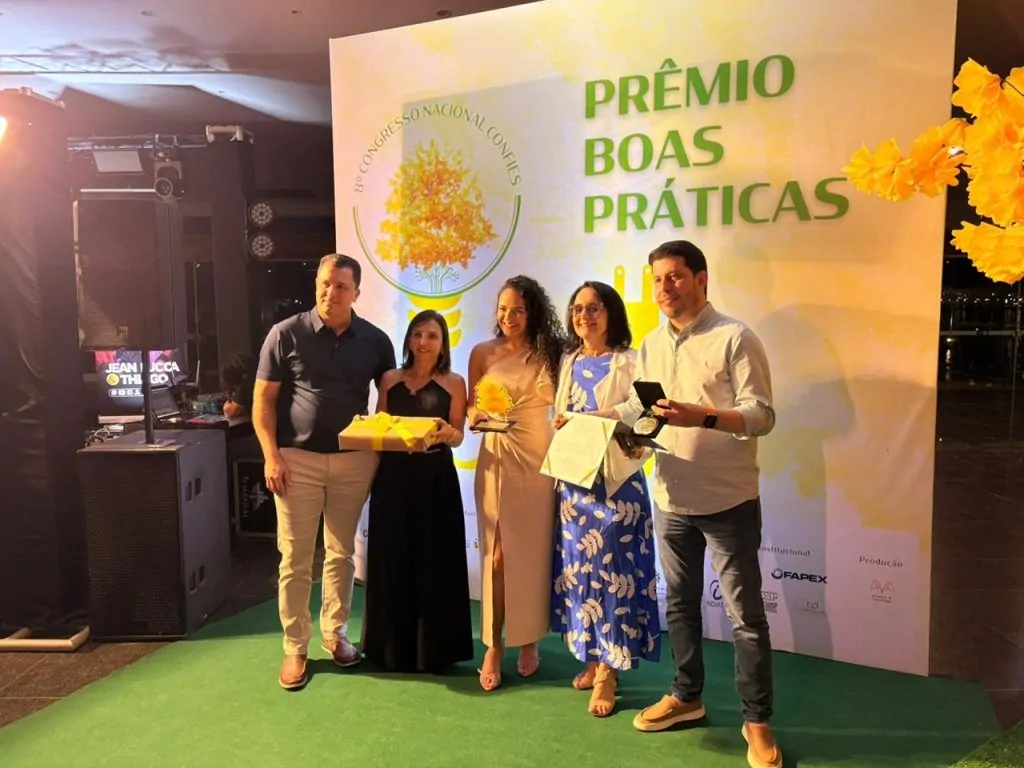 Premiação “Boas Práticas de Gestão” em Congresso Confies. Alexey Martins, Claudia Barbosa, Nauara Cristina, Profa. Sandramara Matias Chaves e Rafael Visibelli. Imagem: divulgação Confies A Fundação de Apoio Universitário (FAU) conquistou o 4º lugar no Prêmio Boas Práticas de Gestão durante o 8º Congresso Nacional do Conselho Nacional das Fundações de Apoio às Instituições de Ensino Superior (Confies), realizado na semana passada (15 a 17/10), em Brasília. Este ano foram 39 projetos inscritos para a premiação, a conquista da FAU coloca a fundação em posição de destaque no país, especialmente por receber o Prêmio por 3 anos consecutivos. O reconhecimento destacou o projeto COÉ Coworking, iniciativa que integra o ecossistema de inovação da FAU e promove conexões entre pesquisa, empreendedorismo e desenvolvimento regional. “Esse é o quarto prêmio que a FAU recebe em três anos consecutivos, um reconhecimento que reforça nosso compromisso com a inovação, a gestão eficiente e o fortalecimento das instituições de ensino e pesquisa no Brasil”, disse Rafael Visibelli, diretor executivo da FAU. No ano passado a FAU conquistou o Prêmio em duas modalidades. O primeiro lugar com o “Programa de Saúde e Bem-Estar”, e o terceiro lugar com o de “Automação para otimização de processos bancários”. A premiação de “Boas Práticas em Gestão” ocorre em um período em que as fundações vêm se preparando para a reforma tributária, que será implementada em todo o país. As novas formas de gestão, com reconhecimento nacional, apontam para a busca por eficiência financeira e a ampliação dos serviços prestados aos pesquisadores, às instituições de ensino apoiadas e ao ecossistema regional e nacional. Nesse sentido, o tema principal do congresso deste ano foi “Inovações tecnológicas, sustentabilidade e sociedade”, incluindo a regulamentação da reforma tributária. O evento contou com a participação de mais de 500 inscritos, entre pesquisadores, gestores de fundações e parceiros de projetos de desenvolvimento tecnológico. Participaram do evento em Brasília o diretor executivo da FAU Rafael Visibelli, Alexey Martins, Claudia Barbosa e Nauara Cristina. Os temas debatidos interferem diretamente em toda a comunidade que participa das ações do ecossistema de inovação aberta no país. Esta foi considerada a maior edição do congresso, com a participação de fundações de todas as regiões brasileiras. “Cada nova edição do Prêmio de Boas Práticas mostra o crescimento da força e da criatividade das nossas Fundações de Apoio. Tivemos 39 projetos inscritos este ano, uma participação que ganha expressividade a cada ano, onde todos demonstraram excelência e o quanto o setor está comprometido com a inovação, a gestão eficiente e o engajamento com questões relacionadas ao desenvolvimento social”, disse Sandramara Matias Chaves, vice-presidente do Confies, ao site da Confederação, durante a cerimônia de premiação. Por: Cristiane de Paula (jornalista FAU) Publicado em 21/10/2025 ás 09:58